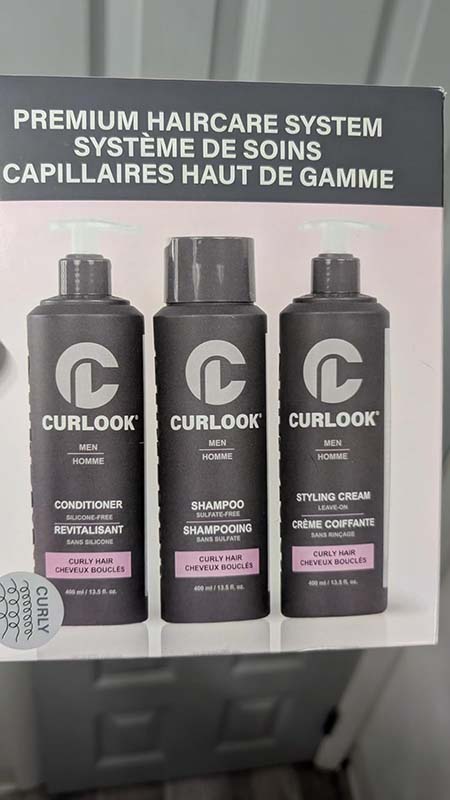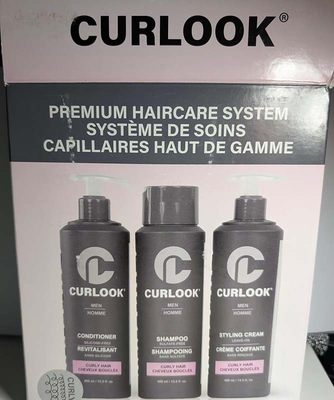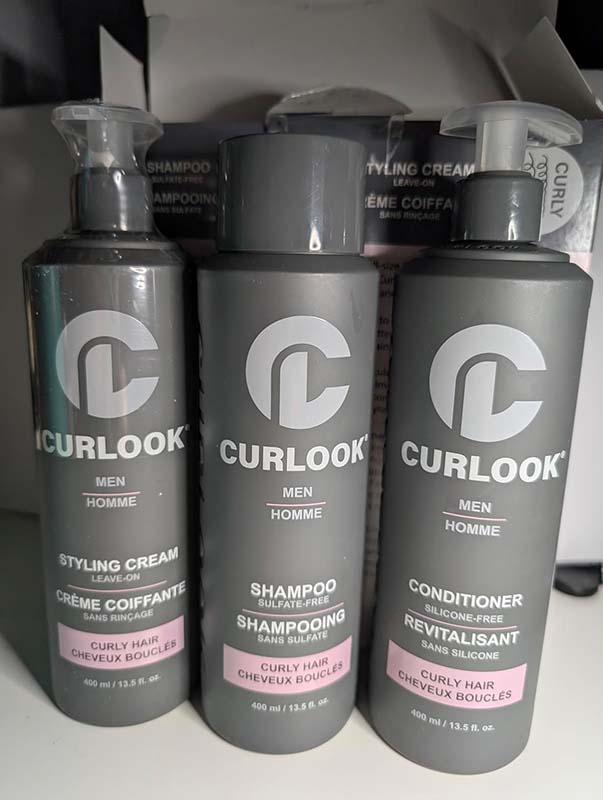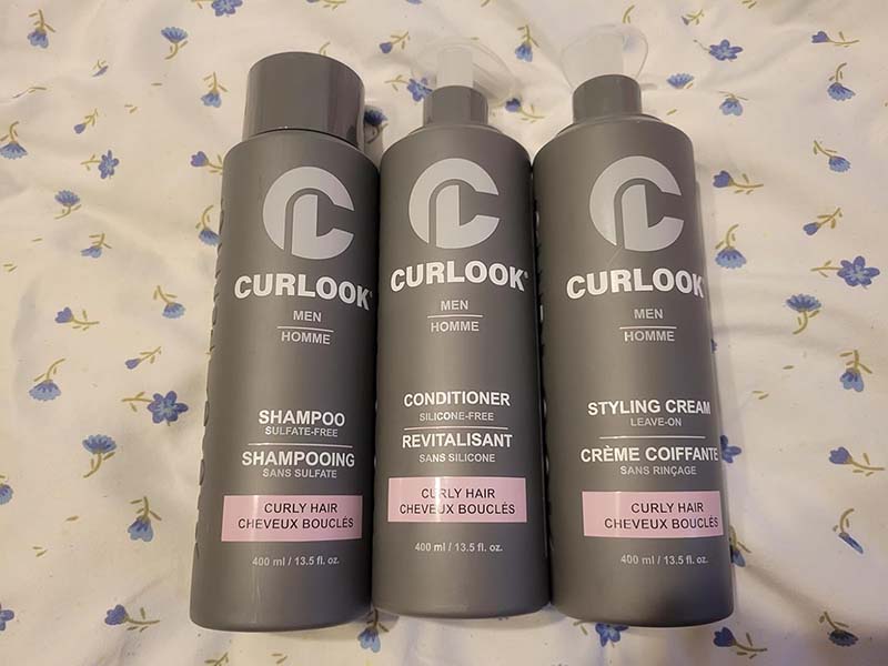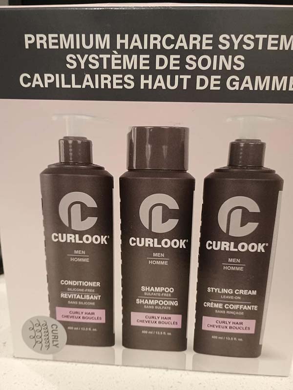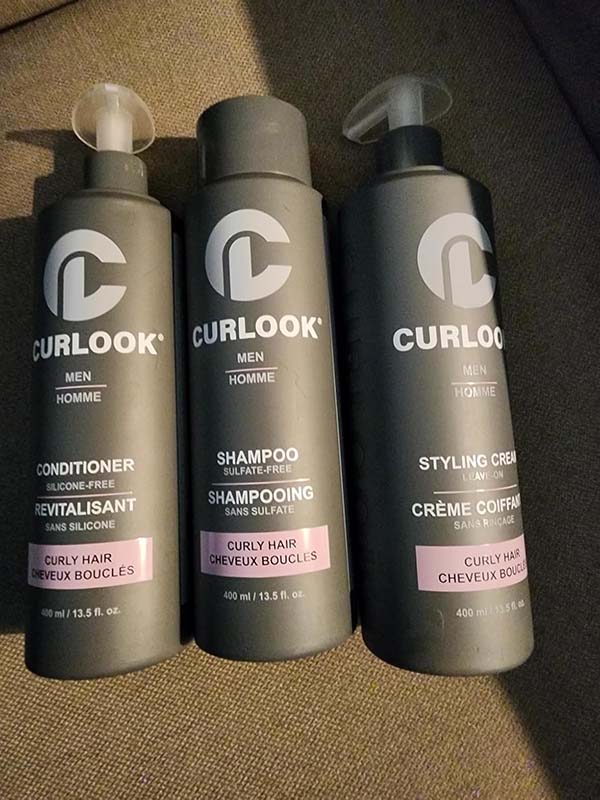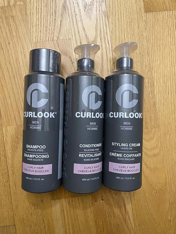 This Curlook curly hair package works great. The whole set has a nice light scent that’s fresh and cologne-like. The shampoo has a nice lather and leaves my roots very clean. The conditioner leaves my hair soft and hydrated without weighing it down. The styling cream isn’t too heavy on my thin hair, it helps define my curls and helps with frizz. This is a great set for curly hair.