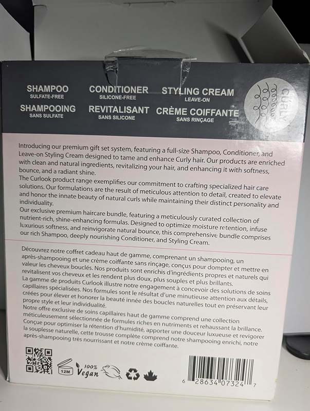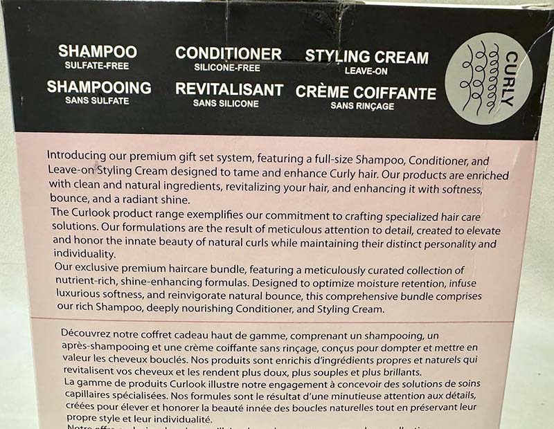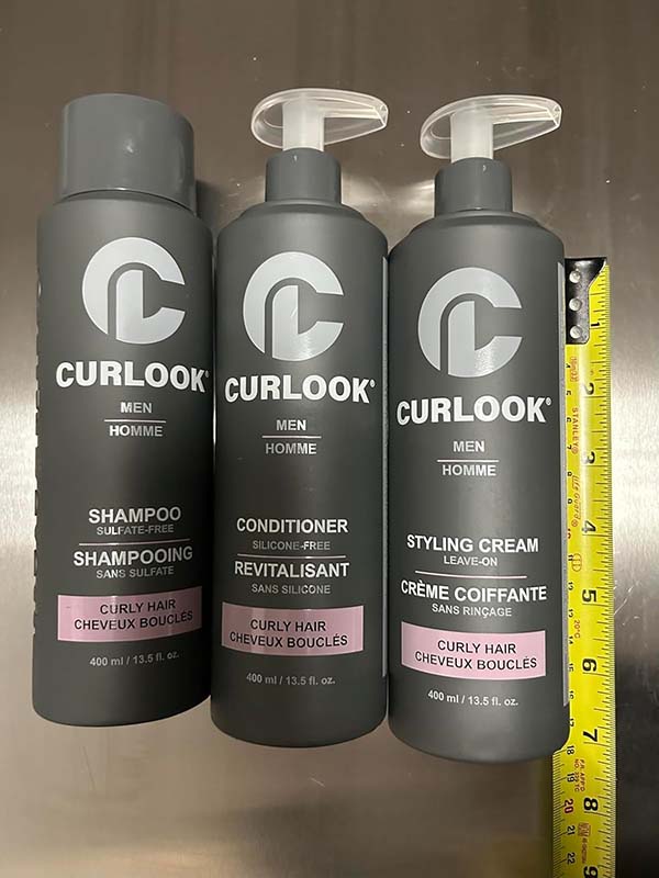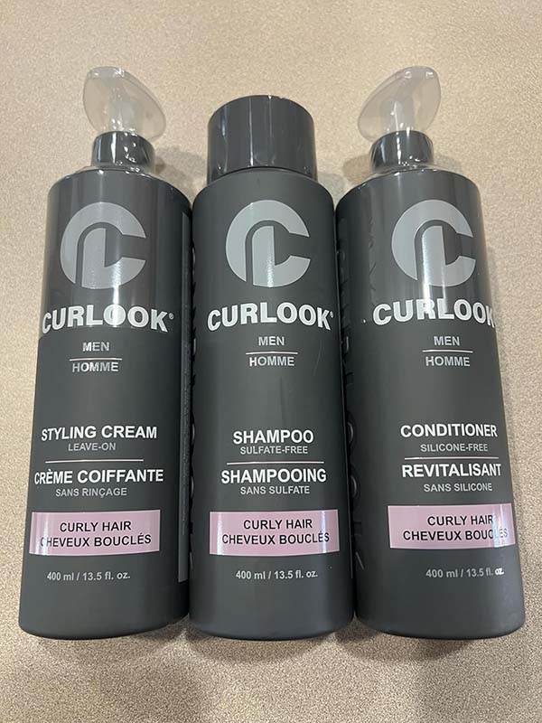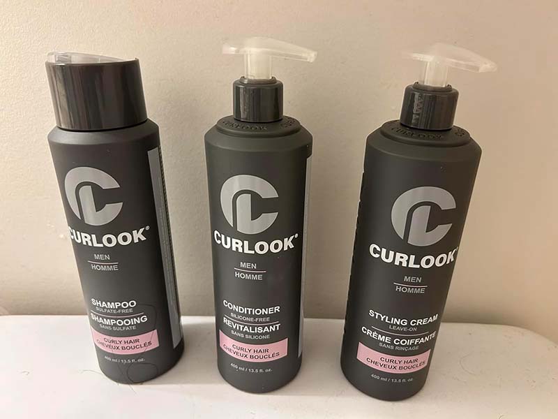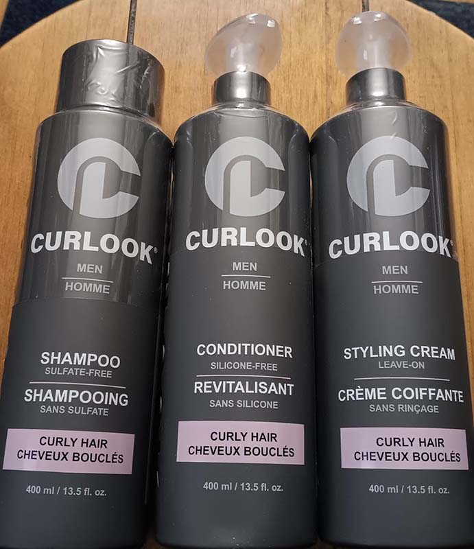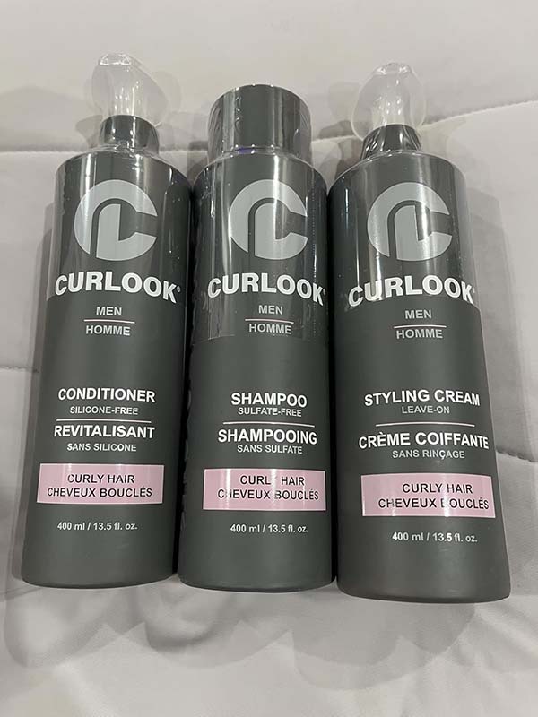 This Curlook curly hair package works great. The whole set has a nice light scent that’s fresh and cologne-like. The shampoo has a nice lather and leaves my roots very clean. The conditioner leaves my hair soft and hydrated without weighing it down. The styling cream isn’t too heavy on my thin hair, it helps define my curls and helps with frizz. This is a great set for curly hair.