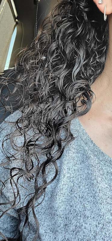 I have type 3a curly hair. The weather here has been wet, humid, and yucky and will be for some time so I can’t get a good idea on how well it’s doing on my curls. It does, however, make my hair feel very great. The photo is my hair after a 30 minute walk and my hair wasn’t too frizzy. My only complaint is the perfume floral smell is strong. First time I used it, I sneezed uncontrollably for several hours.
