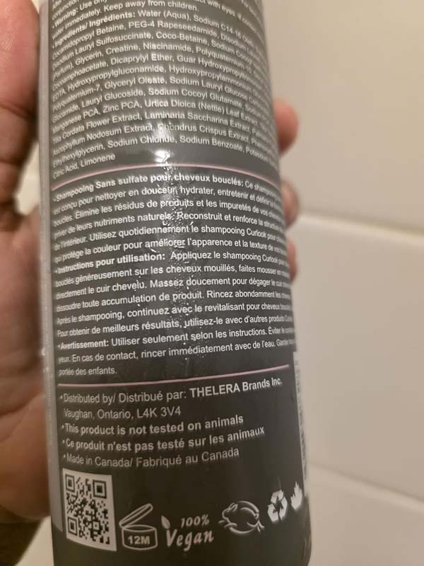 This shampoo from Curlook comes in a 400 ml bottle. I like the scent of this shampoo but people who are sensitive should be aware. This shampoo does a decent job in hydrating and also help with tangles and frizzy hair. The current price of $24 CAD is reasonable.