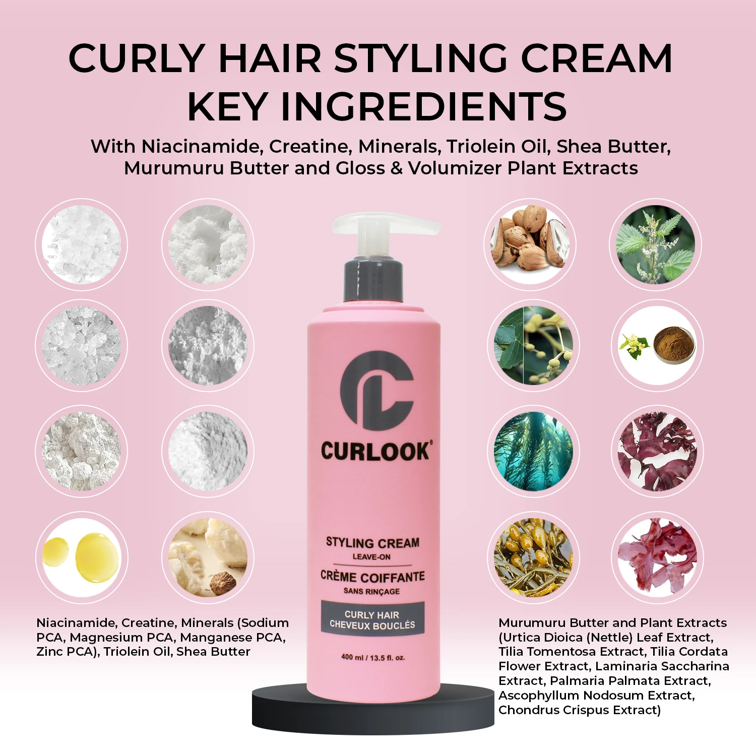 With Niacinamide, Creatine, Minerals, Triolein Oil, Shea Butter, Murumuru Butter and Gloss & Volumizer Plant Extracts