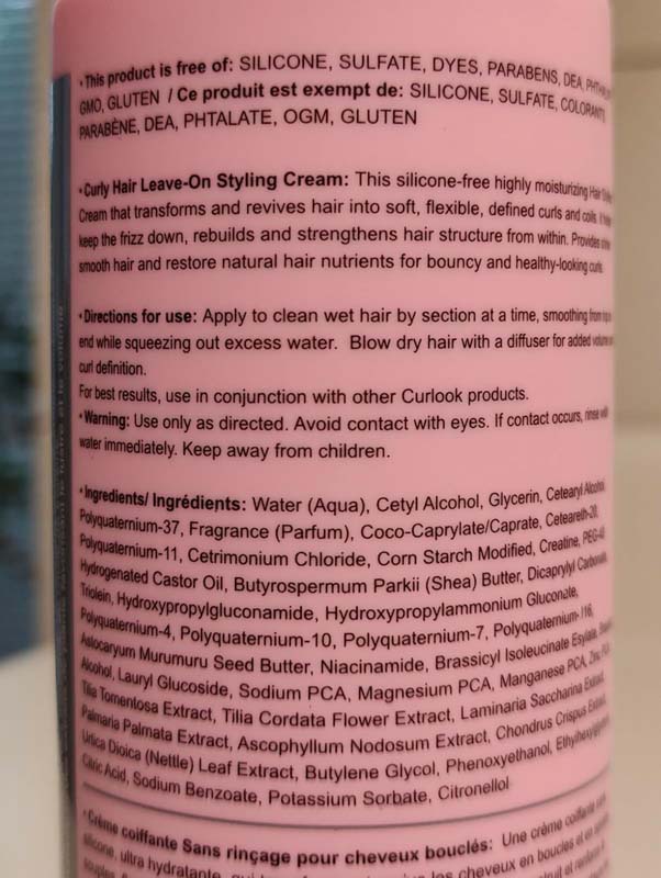 Like with other curlook curly hair products (including shampoo and condition), the styling cream is very strongly scented. The scent does wear off as it dries, but it is a striking floral odour that may be offsetting for people.