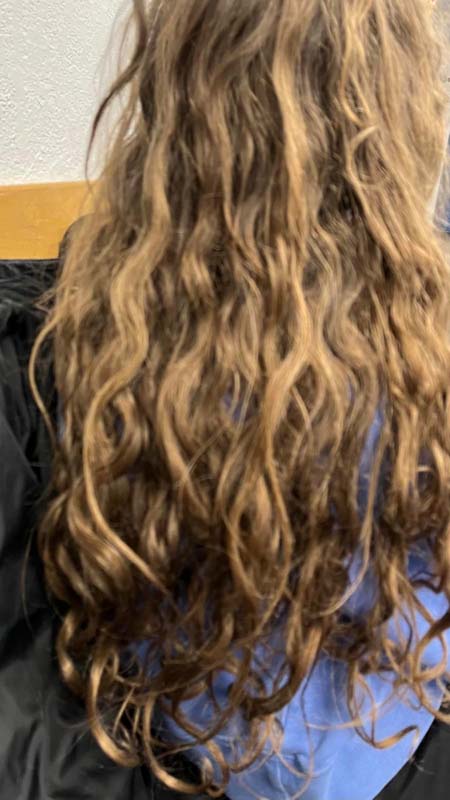 For grand daughter with waist length, curly hair. She’s on a swim team so she also deals with ‘pool’ hair. She’s giving this product 2 thumbs up. When I comb through her curls after using the conditioner, there are fewer tangles, and her hair shines.