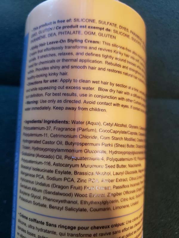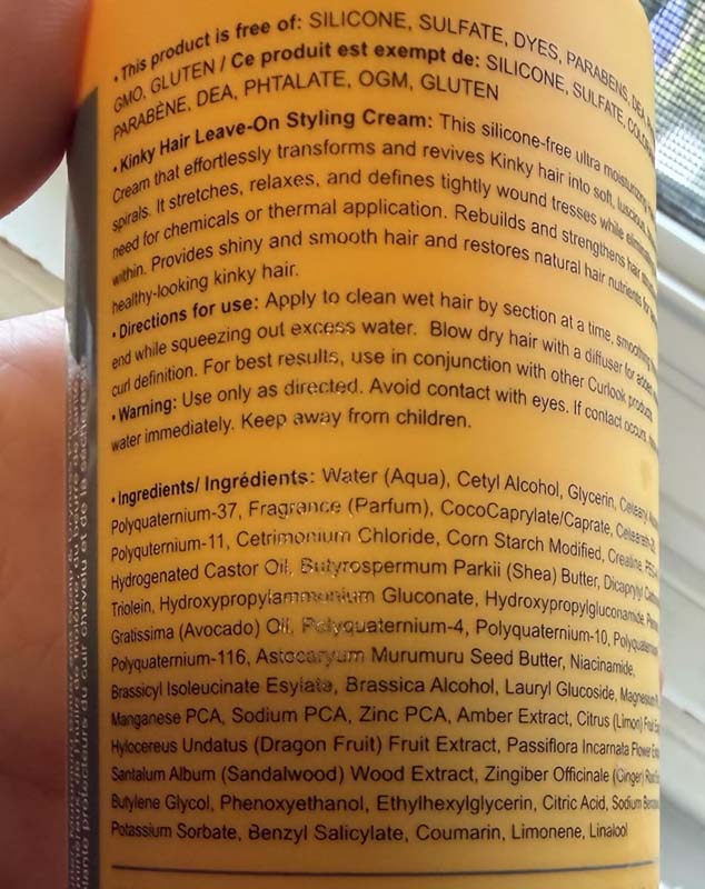In using the Curlook products, the last product in this line is the styling cream. My wife has been enjoying this line so far. It has the same pleasant fragrance as the others. It has nice ingredients for people looking for no silicones or sulfates in their products.