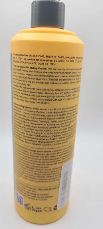 I am constantly trying to find hair products that really work for my curls. I do not have kinky hair but do have coily curls. This leave in styling creme does work very well for my hair. I use it on my towel dried hair while still damp. I do not touch my hair once I have washed and conditioned it. I will get extremely frizzy hair if I mess with it after it has dried. This formula leaves my hair soft and light. Not crunchy or wet looking like some other products I choose not to use anymore. I think this is a great addition to girls with locks of curls. Highly recommend this product if you find it. It is a favorable and large bottle; it will last a long time for the price which I think is a great selling point. It smells great, easy to pump and apply.